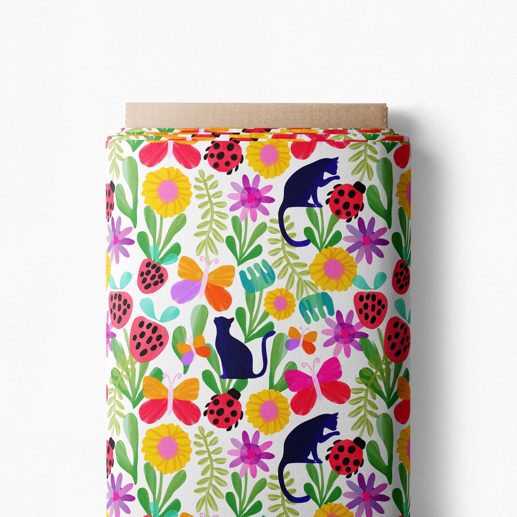Kitty Cat Strawberry Patch | Fabric by the Metre