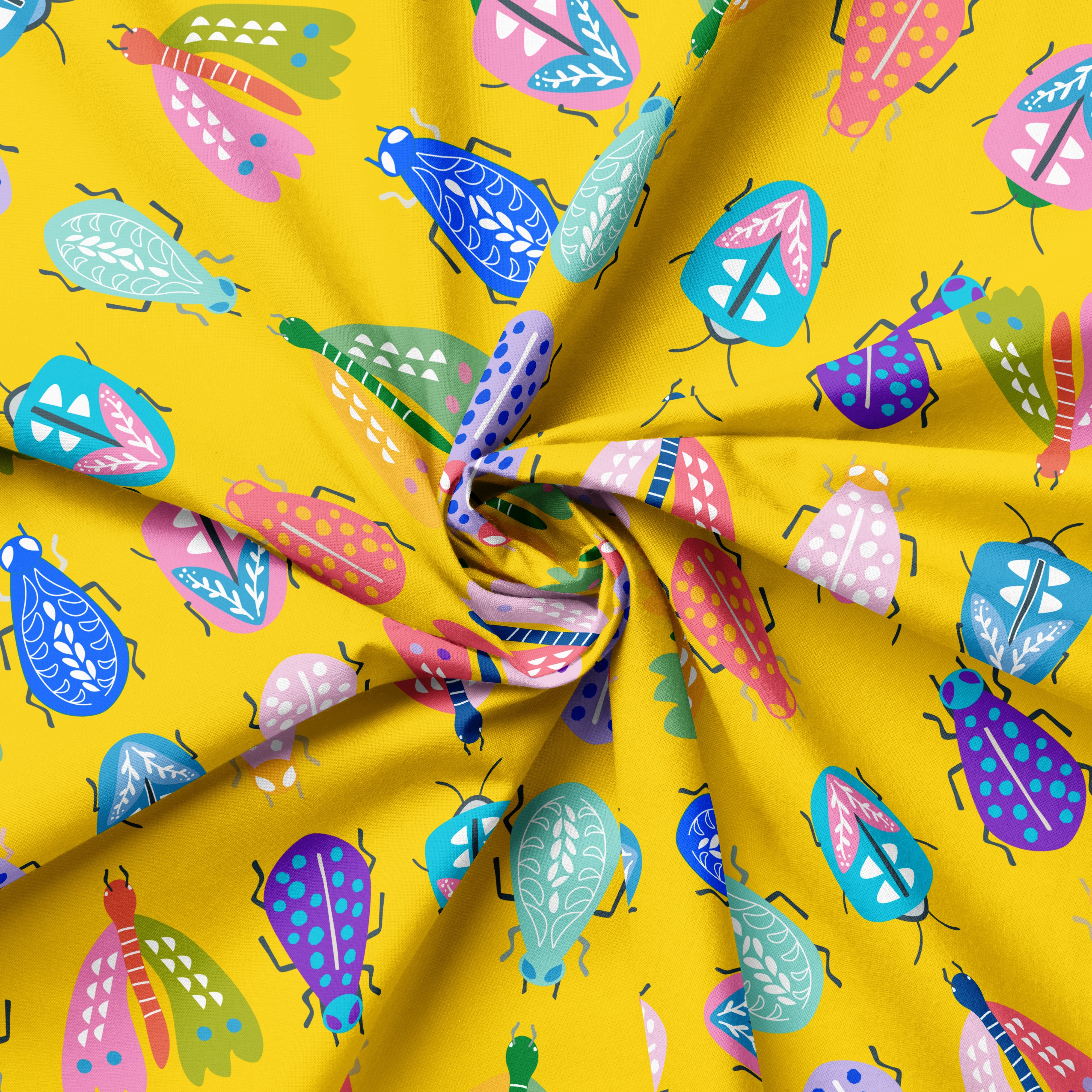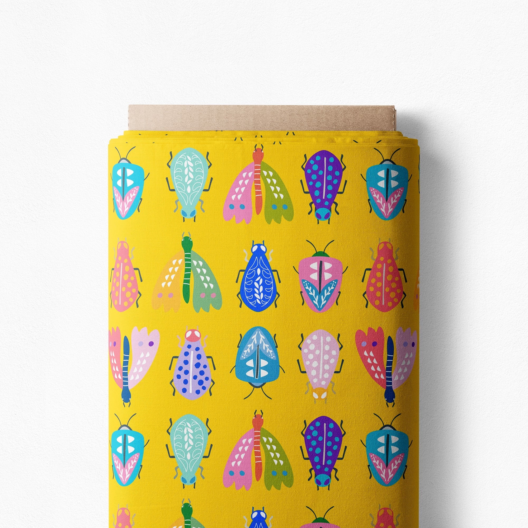 One of our most popular prints now available in sunny yellow! Brilliant jewel bugs, so cute and vibrant!