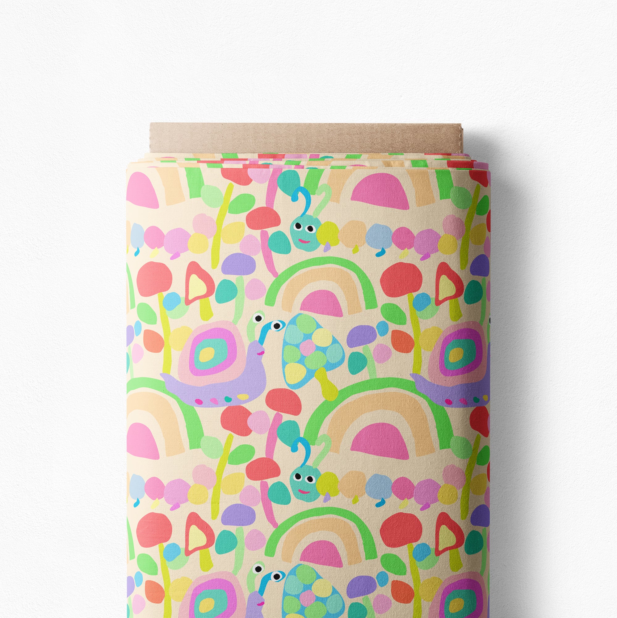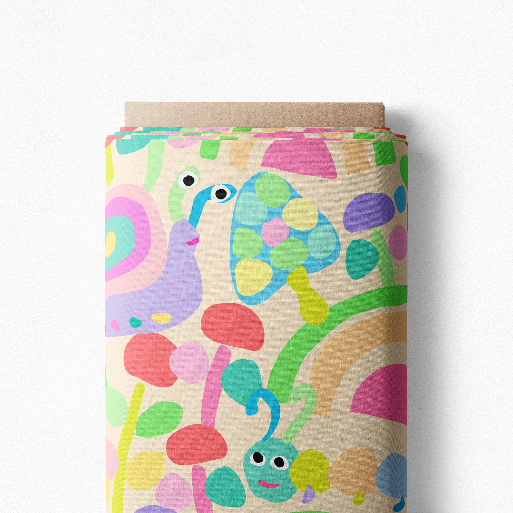 You can't find funner than this cutie! Mr Biggy, inspired by small creatures with big personality! Do you know any?! Lovable snails and caterpillars on a super joyful pastel playground! Available in Cream, Eggplant and Noir.