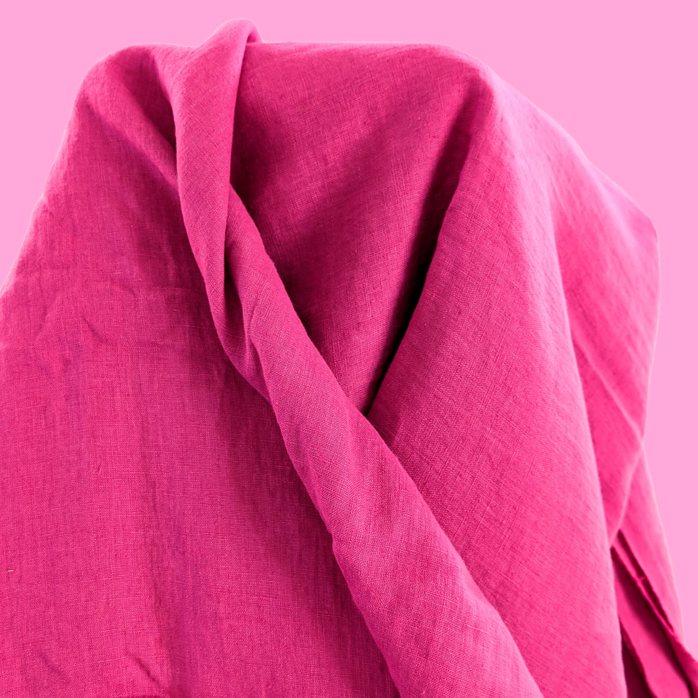 Rose Pink 100% Pure Certified European Flax Linen. A vibrant, highly textural linen, pre-washed with a gorgeous feel. A premium midweight linen suitable for clothing and also homewares.