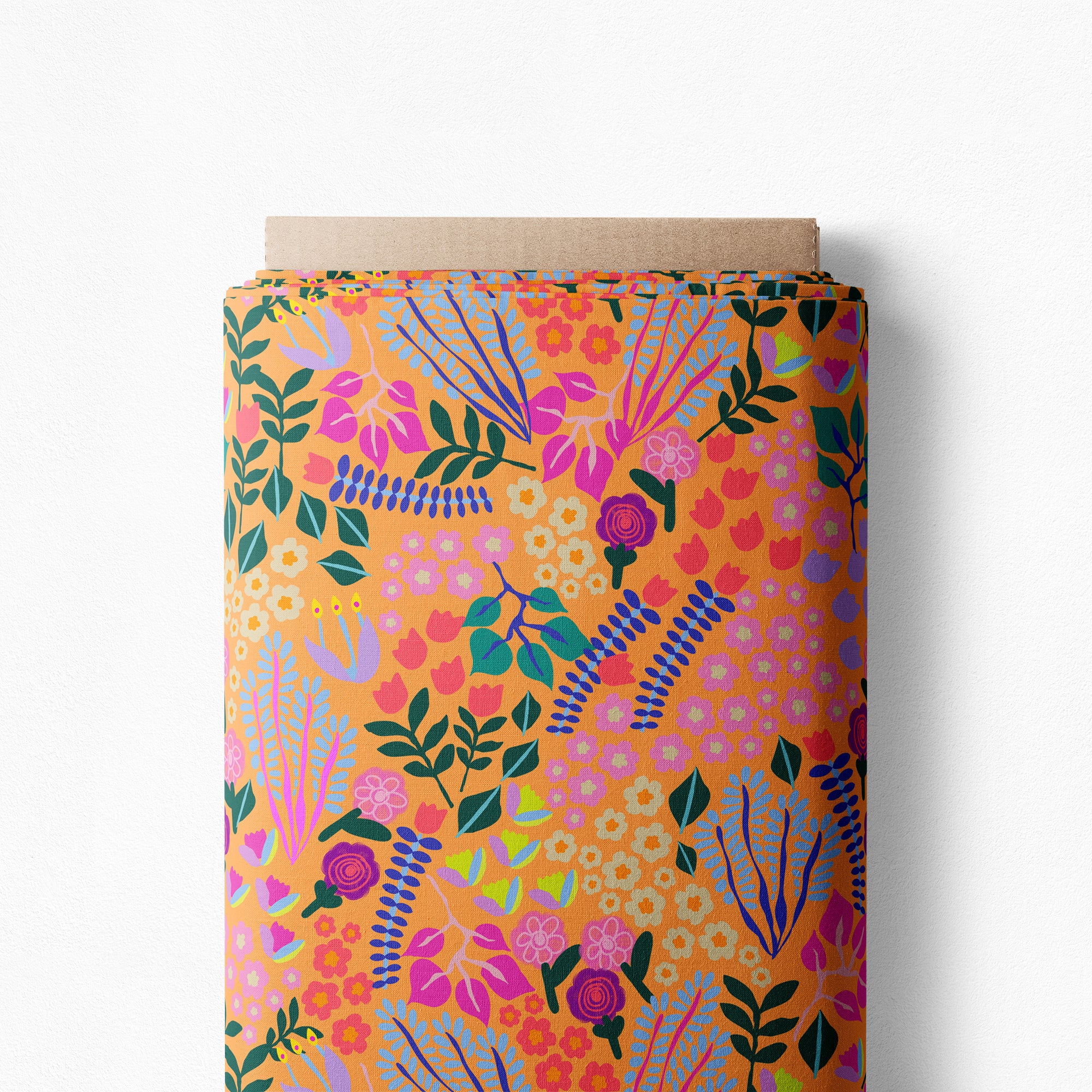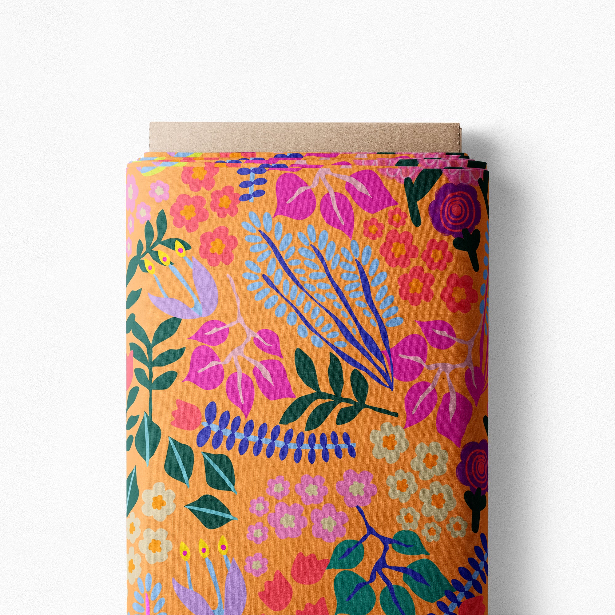 A breathtakingly intricate and dazzling floral fabric awakening all the senses in a sunset-ochre garden of beauty! The luminescence of this print is profound in its inspiring connection we have with natural spaces around us.